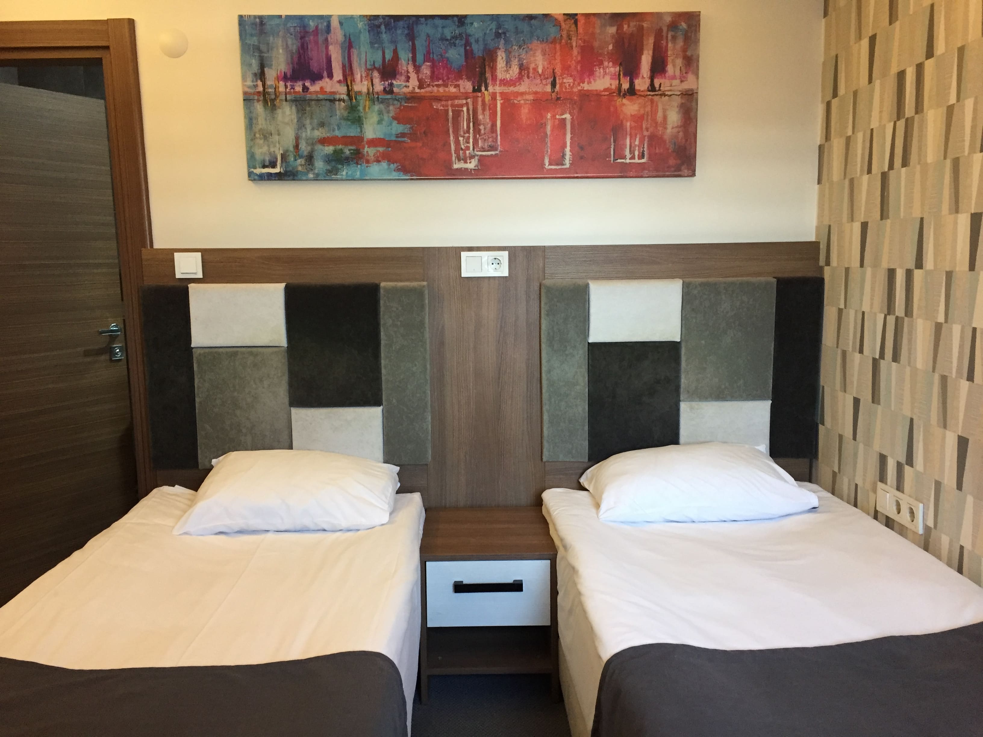 İki ayrı yatak seçenekleri bulunan odalarda uydu yayınlı 32” Full HD TV, kettle servis, çalışma masası, yüksek hızlı internet hizmetimiz mevcuttur.